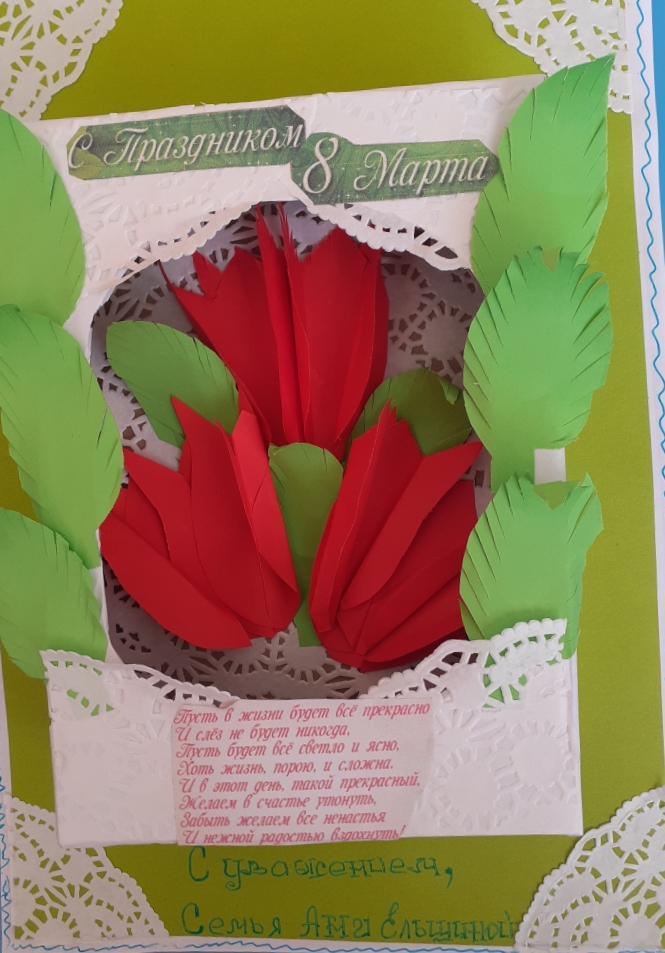 Поздравительная открытка к Дню 8 марта «Женщине труженице»